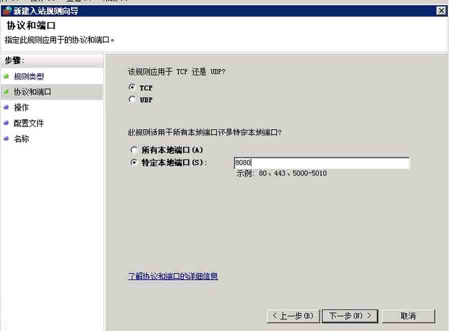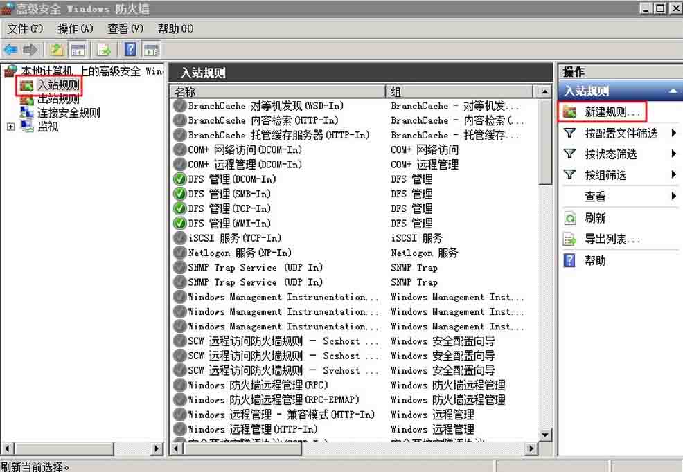 如果入站规则缺省规则是 阻止 ,那么选择选择 允许连接 表示开启该端口。