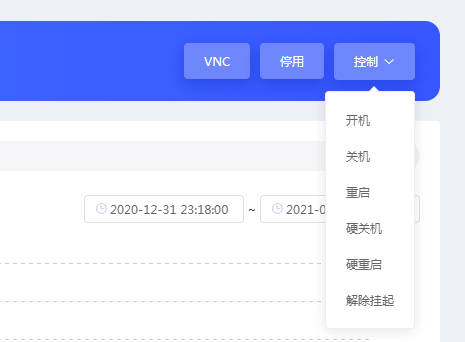 云服务器在线控制支持:开机、关机、重启、硬关机、硬重启。