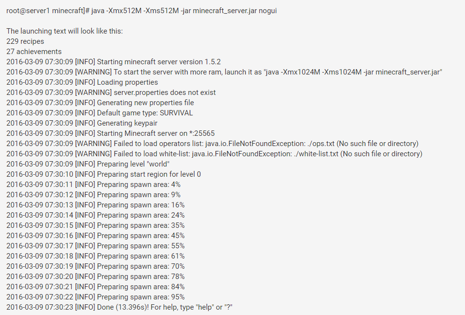 # java -Xmx512M -Xms512M -jar minecraft_server.jar nogui