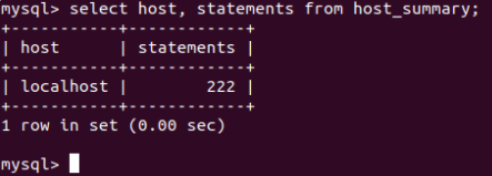 mysql> SELECT HOST, STATEMENTS FROM HOST_SUMMARY;