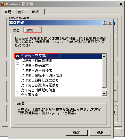 选择 ICMP ,然后把 允许传入响应请求 选上 :