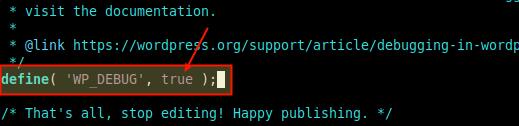 默认情况下,在任何WordPress安装中,“ debug”功能都设置为false。要启用WP_DEBUG,请将其设置为true。