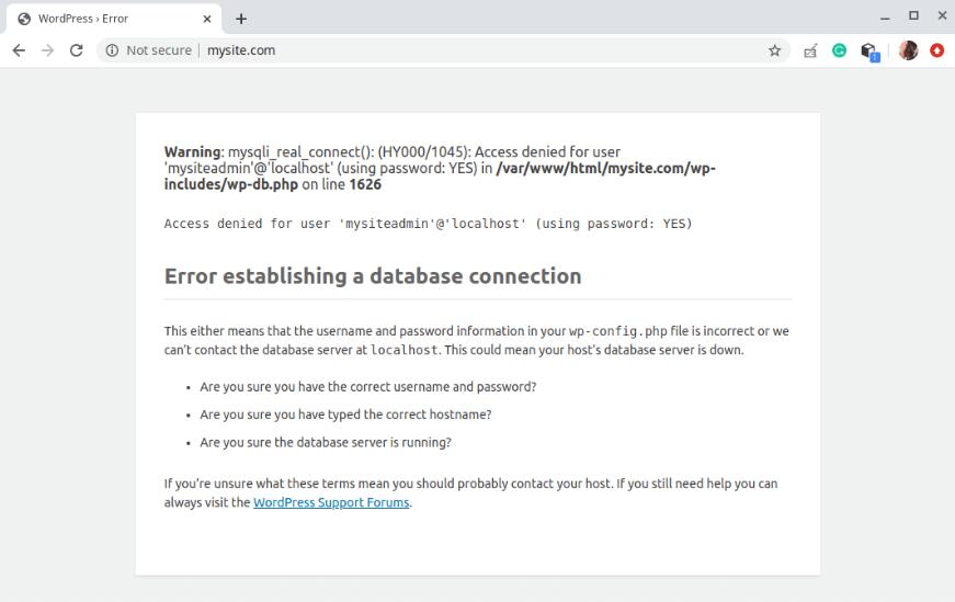 当您查看此错误时,没有附带的太多信息。原因可能有很多:数据库服务器可能已关闭,或者wp-config.php配置文件中定义的数据库连接设置(即数据库名称,数据库用户和用户密码)可能错误。