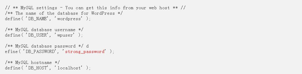 请将'strong_password'修改为一个复杂的密码。你也可以'wp-user'修改为自己设置的用户名。
