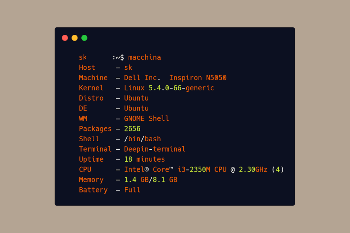 Macchina是基本的系统信息获取程序。它与Neofetch类似,但侧重于性能和极简主义。它甚至比Neofetch工具快。Macchina是用Rust编程语言编写的免费开放源代码程序。它支持Linux,macOS,BSD,并且Windows支持即将推出。