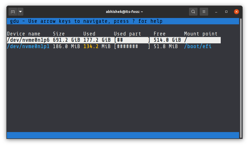还有更友好的方法可以通过GNOME磁盘等图形工具查看Linux中的磁盘使用情况。如果您仅限于终端,你可以使用像ncdu这样的tui工具,以一种图形化的方式来获取磁盘使用信息。