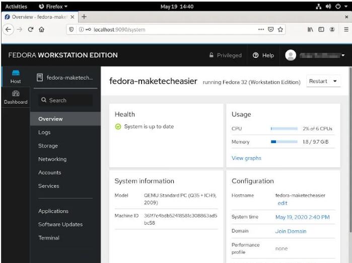 Cockpit也是 "无头管理 "软件组的一部分,所以从那里安装它和其他几个工具一起安装,以帮助管理Fedora工作站或服务器。
